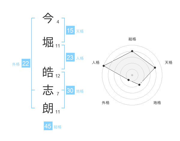 今堀 皓志朗さんの総格は45画の4点