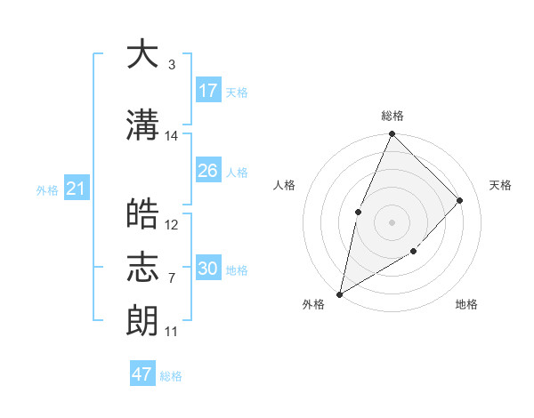 大溝 皓志朗さんの総格は47画の5点!