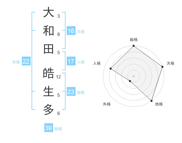 大和田 皓生多さんを姓名の画数から五運を鑑定