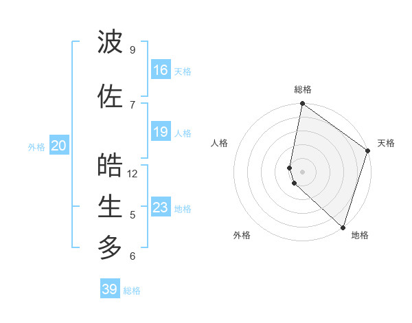 波佐 皓生多さんの総格は39画の5点!