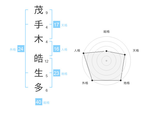 茂手木 皓生多さんを姓名の画数から五運を鑑定