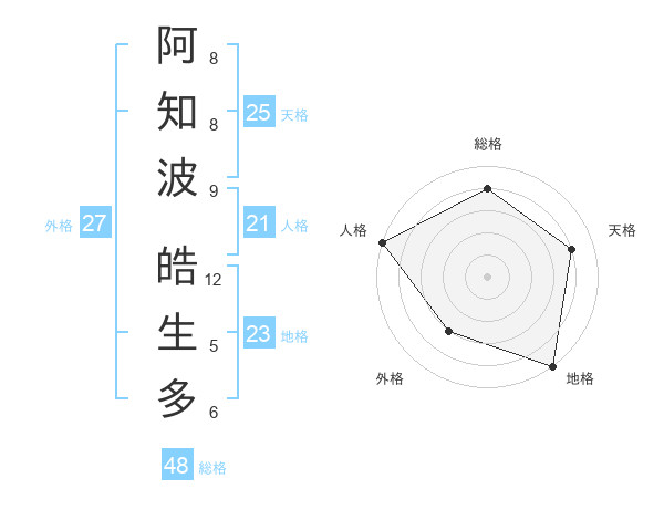 阿知波 皓生多さんの天格は25画の4点!