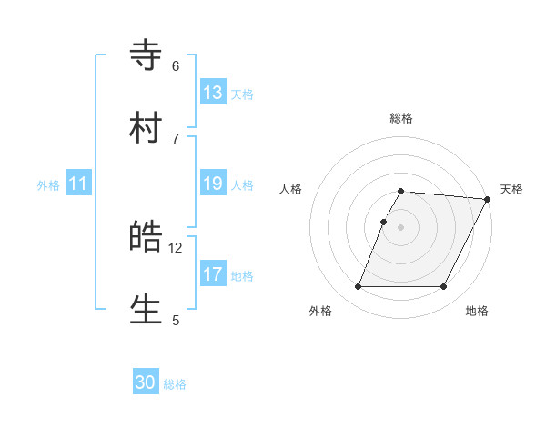 寺村 皓生さんを姓名の画数から五運を鑑定