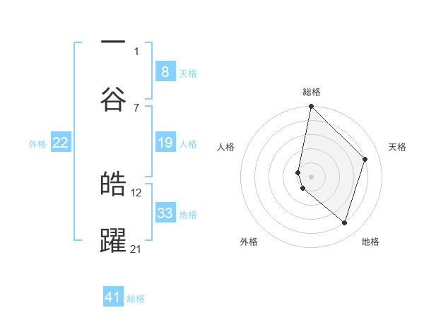 一谷 皓躍さんの総格は41画の5点!