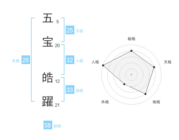 五宝 皓躍さんを姓名の画数から五運を鑑定
