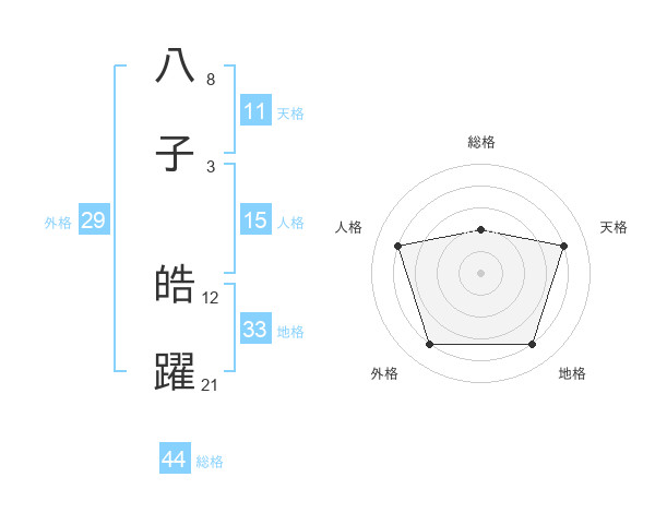 八子 皓躍さんの総格は44画の2点!