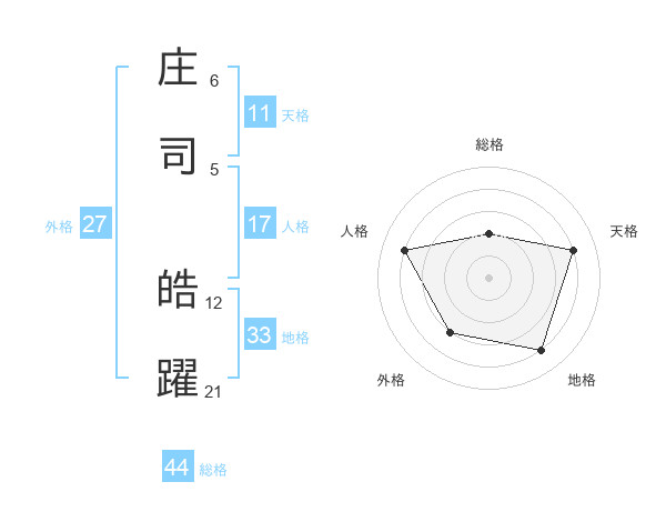 庄司 皓躍さんを姓名の画数から五運を鑑定