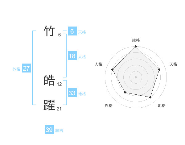 竹 皓躍さんの総格は39画の5点!