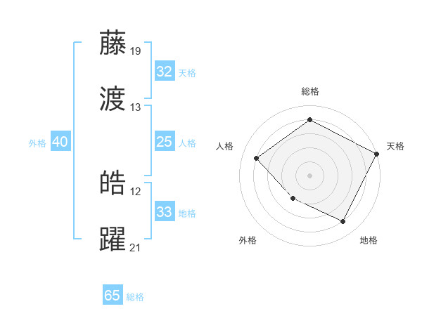藤渡 皓躍さんを姓名の画数から五運を鑑定