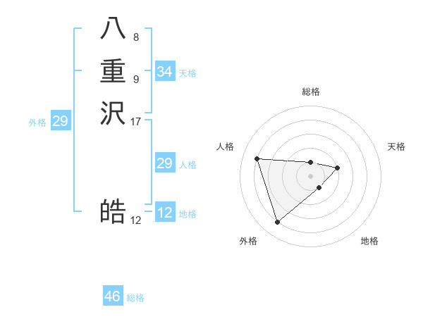 八重沢 皓さんの総格は46画の1点!