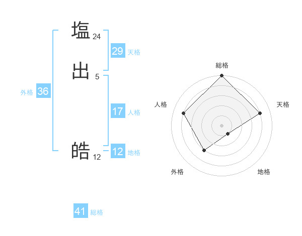塩出 皓さんの総格は41画の5点!