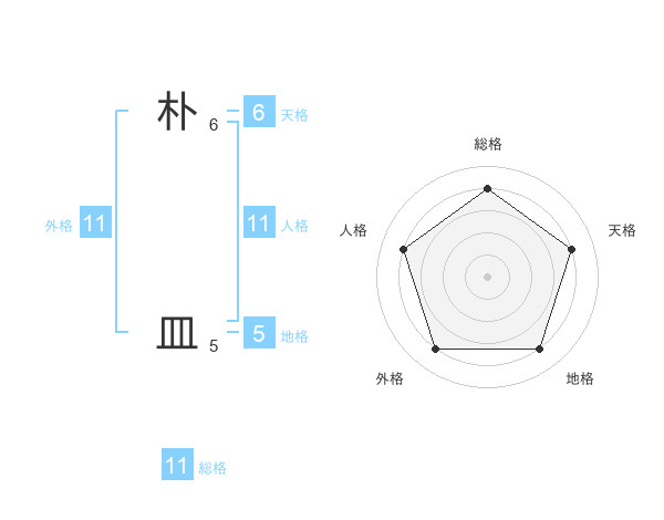 朴 皿さんの総格は11画の4点!