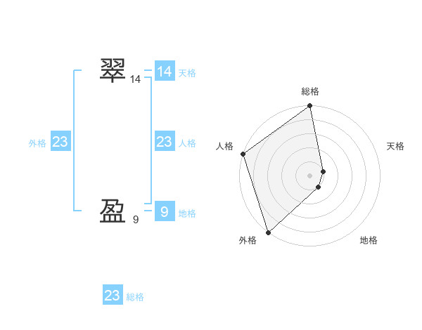 翠 盈さんの外格は23画の5点!