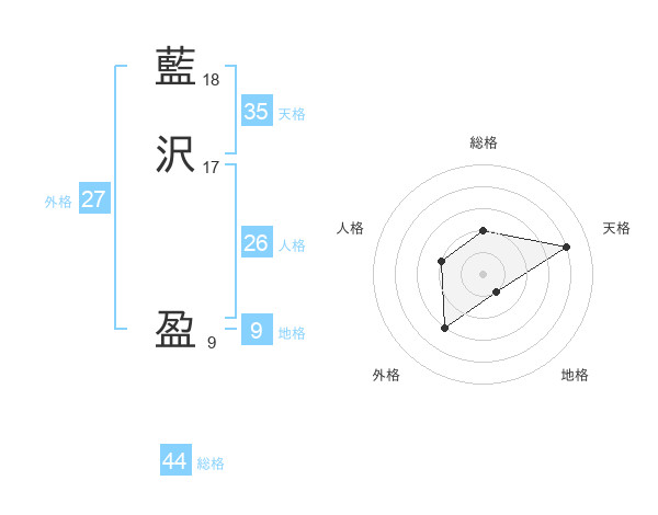 藍沢 盈さんの総格は44画の2点!