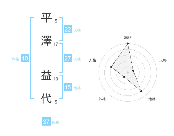 平澤 益代さんの総格は37画の5点!