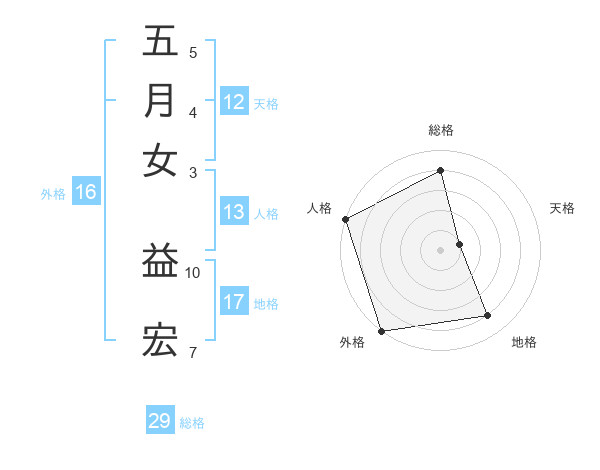 五月女 益宏さんを姓名の画数から五運を鑑定