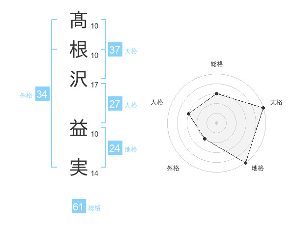 髙根沢 益実さんを姓名の画数から五運を鑑定