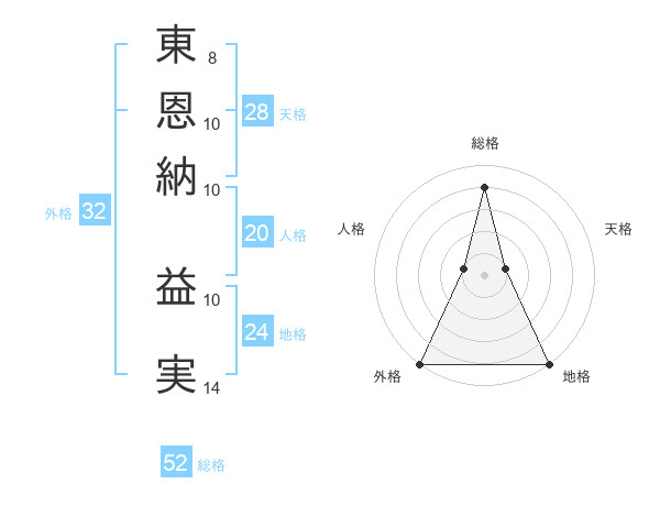 東恩納 益実さんを姓名の画数から五運を鑑定