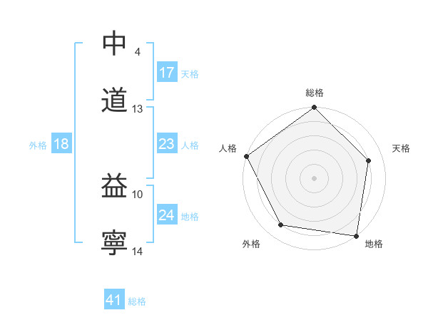 中道 益寧さんの天格は17画の4点!