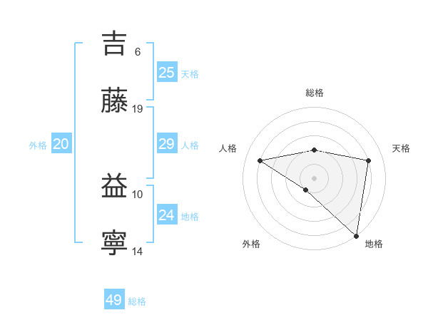吉藤 益寧さんを姓名の画数から五運を鑑定