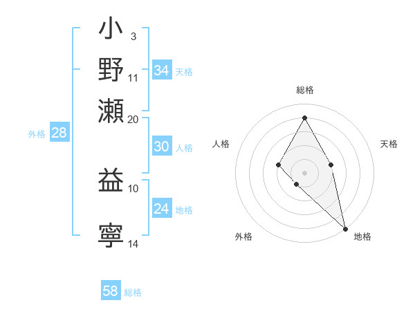 小野瀬 益寧さんを姓名の画数から五運を鑑定