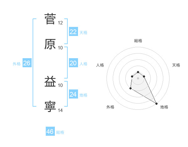 菅原 益寧さんを姓名の画数から五運を鑑定