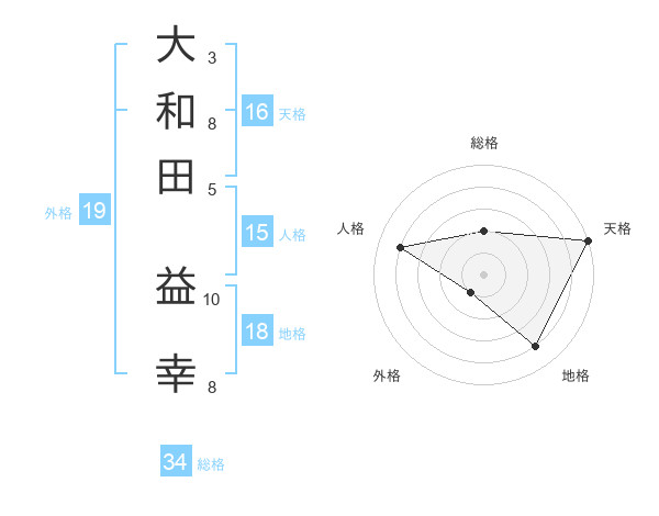 大和田 益幸さんの総格は34画の2点!