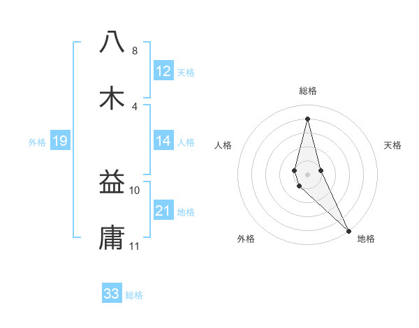 八木 益庸さんを姓名の画数から五運を鑑定