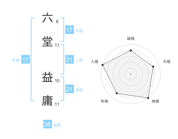 六堂 益庸さんを姓名の画数から五運を鑑定
