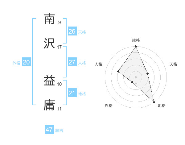 南沢 益庸さんを姓名の画数から五運を鑑定