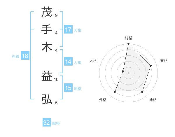 茂手木 益弘さんを姓名の画数から五運を鑑定