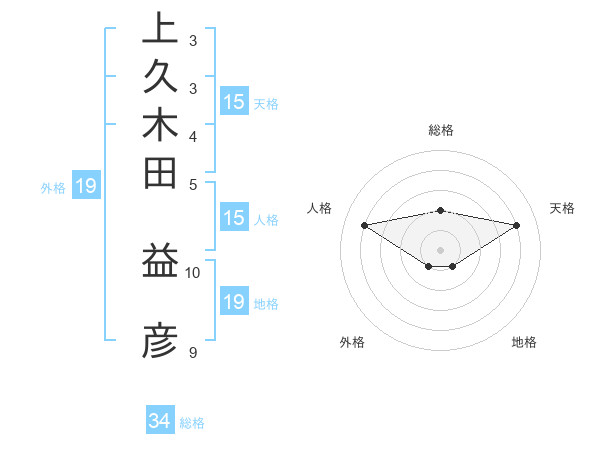 上久木田 益彦さんを姓名の画数から五運を鑑定
