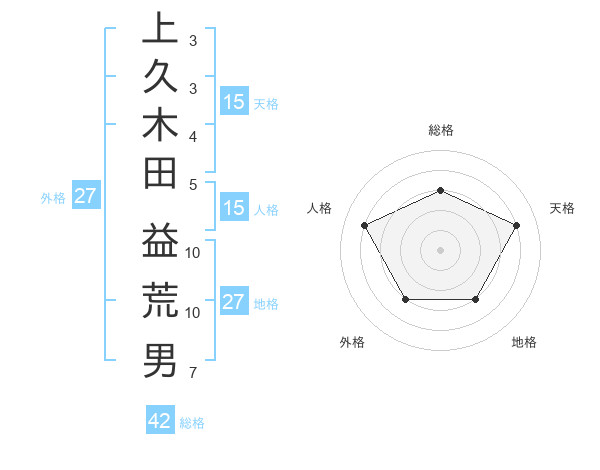 上久木田 益荒男さんを姓名の画数から五運を鑑定