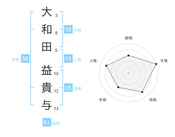 大和田 益貴与さんを姓名の画数から五運を鑑定