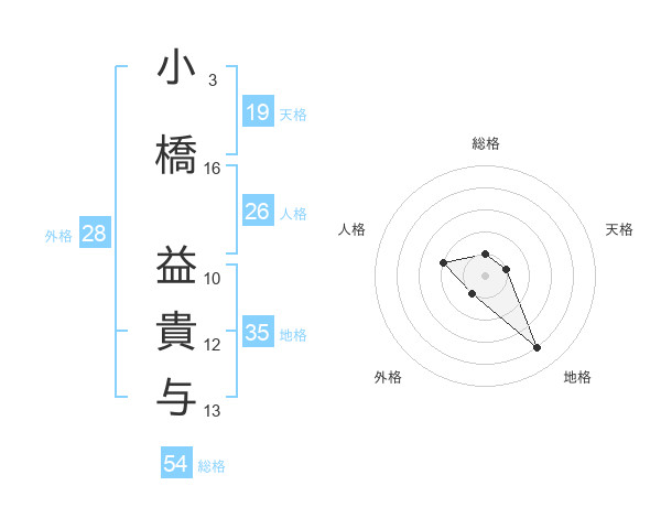 小橋 益貴与さんを姓名の画数から五運を鑑定