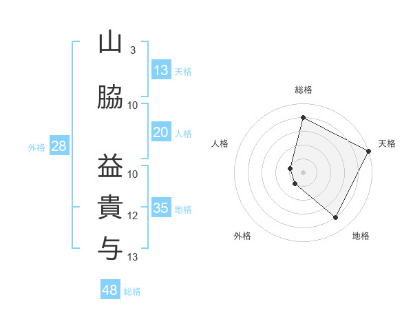 山脇 益貴与さんを姓名の画数から五運を鑑定