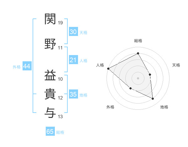 関野 益貴与さんの総格は65画の4点!