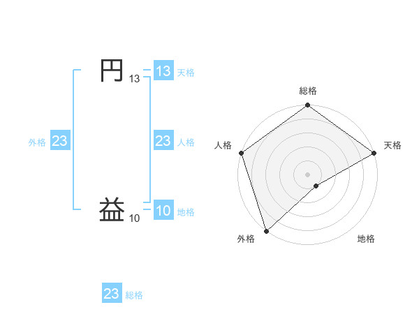 円 益さんの総格は23画の5点!