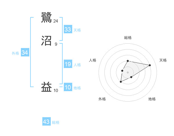 鷺沼 益さんを姓名の画数から五運を鑑定