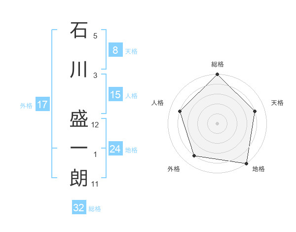 石川 盛一朗さんを姓名の画数から五運を鑑定