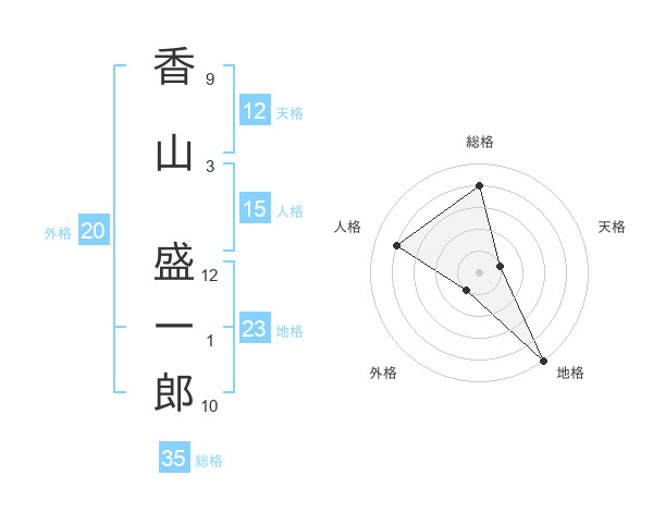 香山 盛一郎さんの総格は35画の4点!