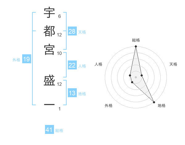 宇都宮 盛一さんを姓名の画数から五運を鑑定