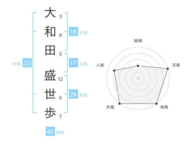 大和田 盛世歩さんの地格は24画の5点!