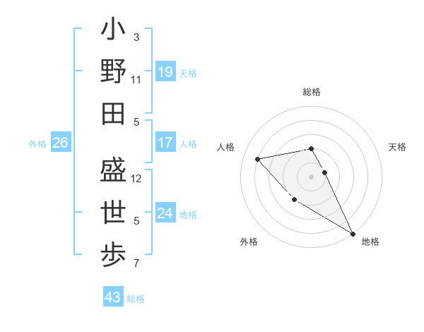 小野田 盛世歩さんを姓名の画数から五運を鑑定