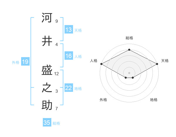 河井 盛之助さんを姓名の画数から五運を鑑定