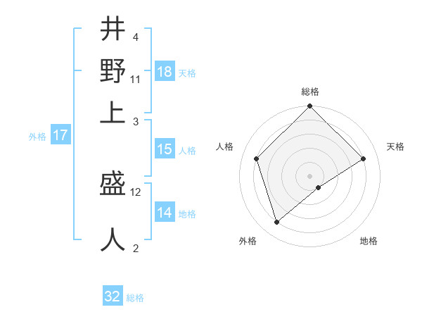 井野上 盛人さんの総格は32画の5点!