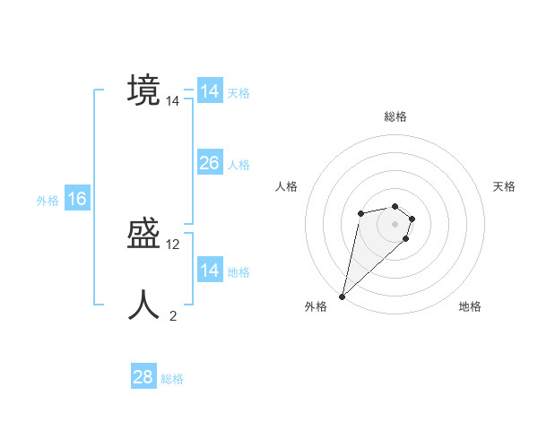 境 盛人さんの総格は28画の1点!