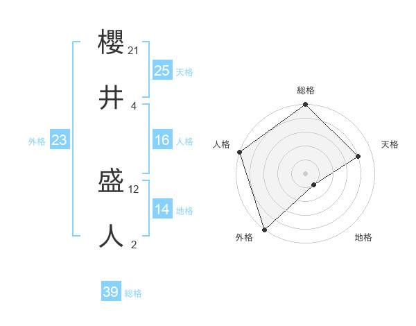 櫻井 盛人さんの外格は23画の5点!