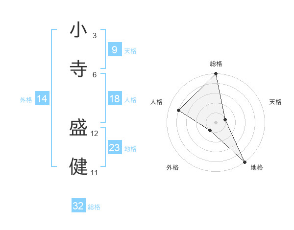 小寺 盛健さんの総格は32画の5点!