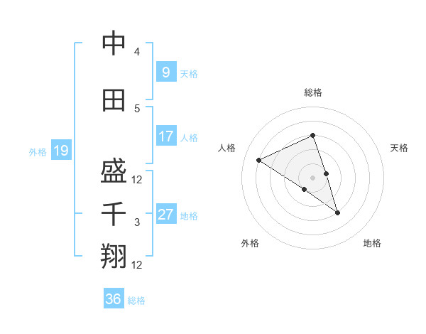 中田 盛千翔さんの地格は27画の3点!